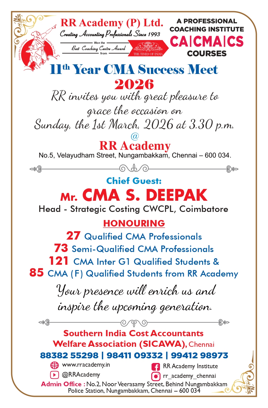 I recently completed CMA foundation at RR Academy, and I couldn't be happier with my experience. The instructors were incredibly knowledgeable and supportive throughout the entire program. The course material was comprehensive and well-structured, making it easy to follow along and understand complex concepts. Additionally, the academy provided valuable resources and practical exercises that enhanced my learning. Thanks to RR Academy, I feel confident and equipped to pursue Inter in CMA. I highly recommend RR Academy for pursuing professional courses provided by them