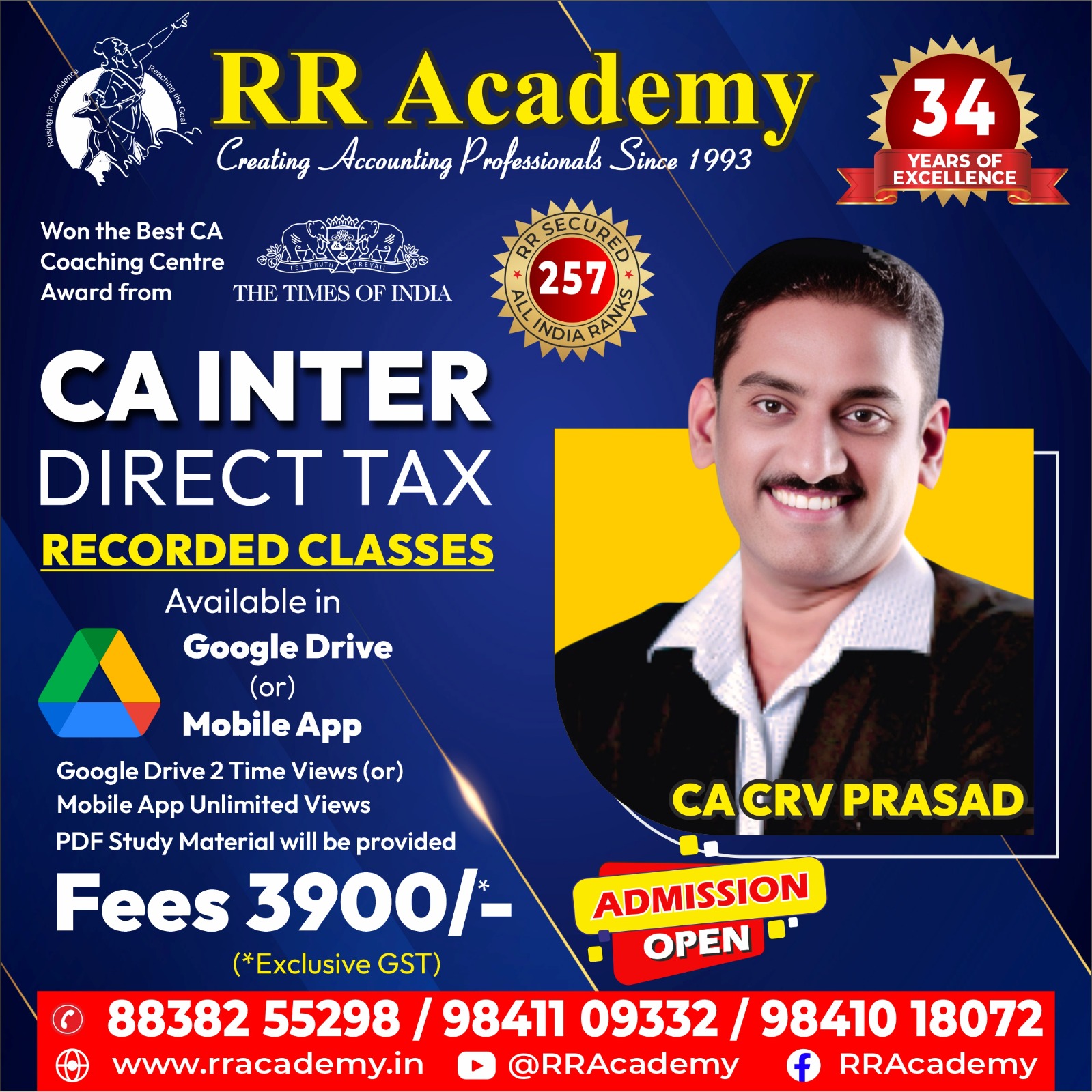 I have completed my CMA foundation exam with the guidance of RR academy. And I feel confident and equipped to pursue Inter in CMA here. Faculties in RR academy are the most experienced with the subject and they were really friendly and supportive to us.They focus on each and every student in the class and encourage us with our work. They especially teach us the conceptual depth rather than just revising the books. Additionally the academy provided valuable resources and practical exercises that enhanced my learning. And the classrooms are air conditioned and comfortable.I highly recommend RR academy for pursuing professional courses provided by them.Thanks to the RR academy.